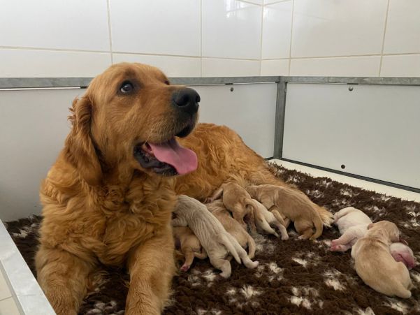 Ce fut une mise-bas éclair: en 5h nos 9 poussins étaient entre les mamelles de Chupa ! Tout le monde se porte à merveille, c'est une maman extraordinaire !